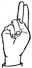 На ћирилици написано ЛАРА КЉУКОВНИЦА састоји се из 14 слова [?]. Исписано ћириличном једноручном азбуком за глувонеме: